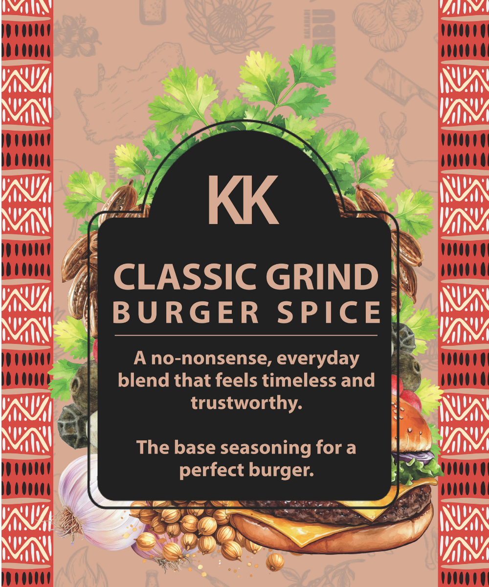 Kalahari Classic Grind Burger Spice delivers savoury, peppery seasoning that keeps burgers juicy and full of flavour.