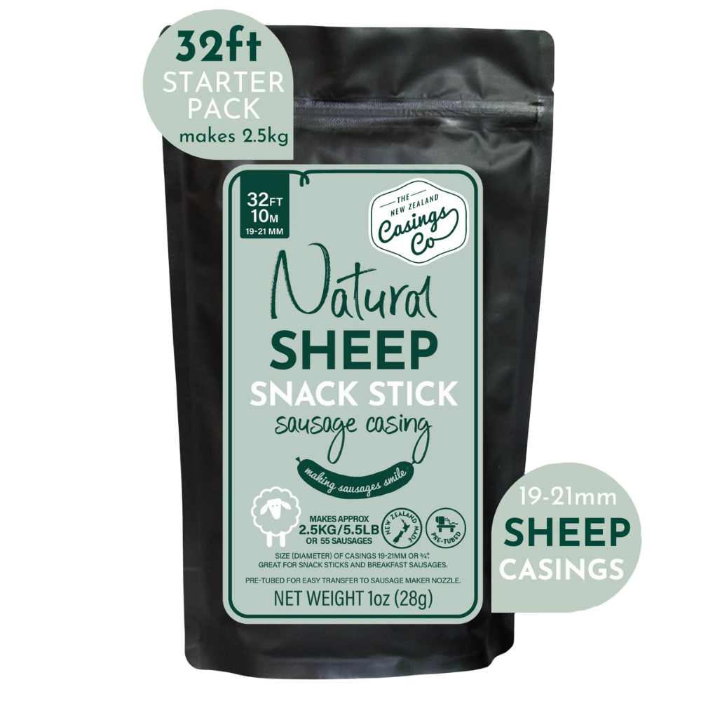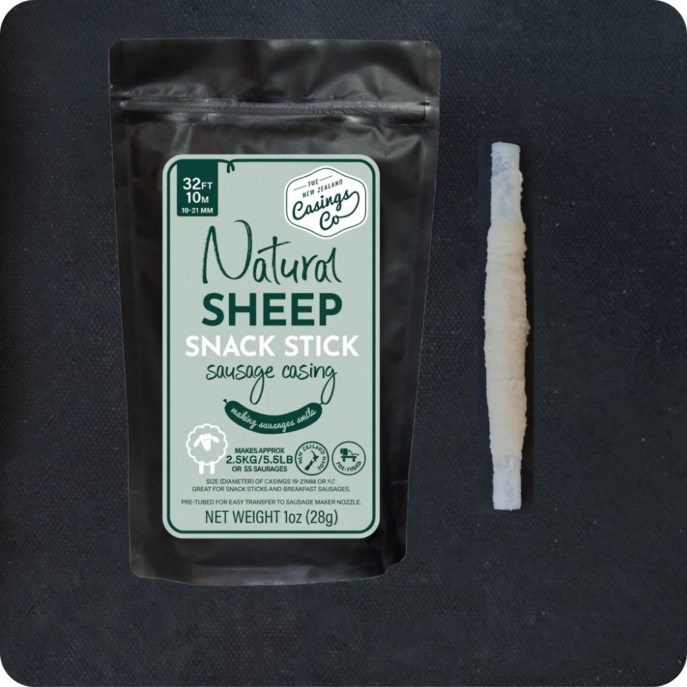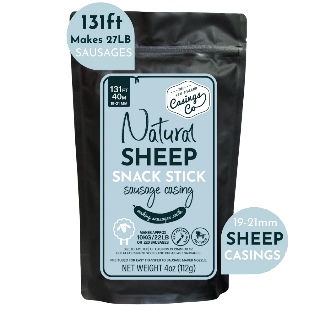 These 19-21mm natural sheep casings are thinner than standard sheep casings, making them well-suited to snack sticks and small-diameter sausages. Because sheep casings are naturally tender, they produce a lighter bite while still holding shape during cooking, smoking, or curing.