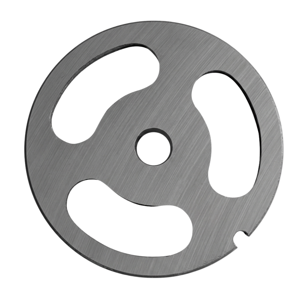 This 3-hole stainless steel sausage grinder plate is designed for smooth, effortless sausage stuffing. Instead of finely mincing, its three wide openings gently press your prepared sausage mix through the machine and directly into the casing. The result is an even, consistent fill with the full, traditional texture you want in homemade sausages. Perfect for anyone who prefers a clean, simple stuffing process without over-grinding the mix.